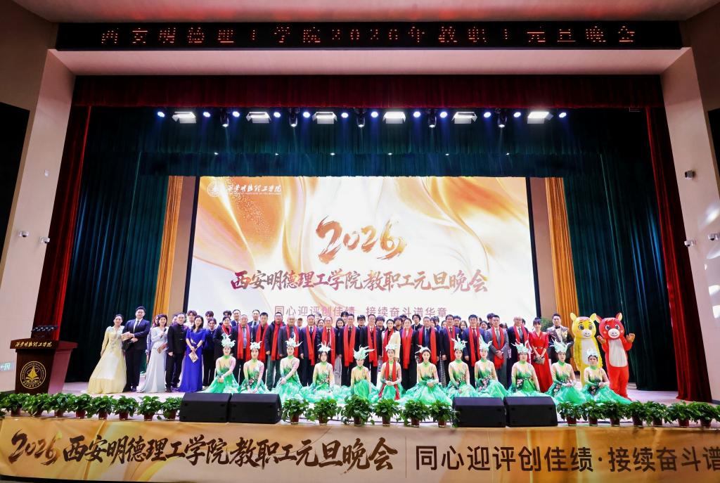 12月30日晚,学校四季廊桥报告厅灯火璀璨、暖意浓浓,以“同心迎评创佳绩·接续奋斗谱华章”为主题的2026年教职工元旦晚会隆重举行。陕西金叶科教集团领导、明德源教育集团领导、学校领导班子成员与全校教职工欢聚一...