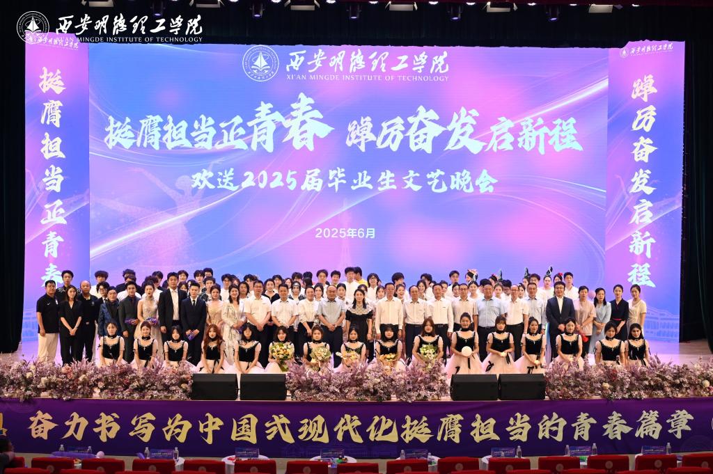 半夏时光凝绮梦明德灯火耀青春6月23日晚beat365vip官网登录入口“挺膺担当正青春踔厉奋发启新程”欢送2025届毕业生文艺晚会在四季廊桥报告厅举行学校董事长袁汉源、执行董事张琳、校长王志刚、党委书记马川鑫,明德源教育...