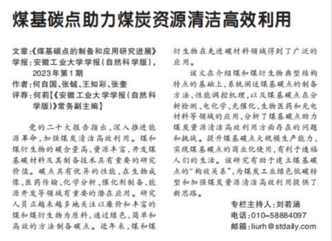 【科技日报】煤基碳点助力煤炭资源清洁高效利用