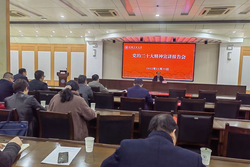 11月25日下午,校党委常委、副校长刘明在佳山校区会议中心二楼报告厅宣讲党的二十大精神,财务处、资产处、基建办、图书馆、后勤处、资产经营公司、睿安公司等单位科级以上人员参加学习。刘明围绕深刻学习领会党的二十大精神的丰富内涵、准确把握党的二十大对高等教育的定位和...