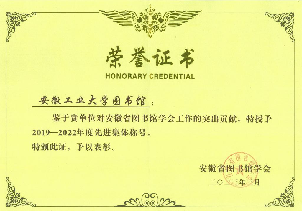 beat365官网图书馆获评安徽省图书馆学会先进集体