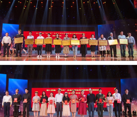 5月18日晚,第十四届全省大学生诗文朗诵比赛暨全国中华经典诵读大赛大学生组省级决赛在安徽师范大学落幕。beat365官网外国语学院秘书学专业吴豪和外语系黄颖两名同学朗读的《中华颂》在全省339件作品中脱颖而出,成功入围决赛,最终在非专业组29支队伍中夺得第六名,荣获二等奖,学校获评“优秀组织奖”。