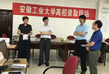 7月15日上午,校长魏先文、纪委书记潘淑琴来到学校本(专)科招生录取现场,视察指导beat365官网今年本(专)招生录取工作,看望慰问录取现场工作人员。