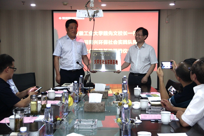 在合肥同兴环保科技股份有限公司,魏先文看望慰问在此开展暑期社会实践的能源与环境学院、化学与化工学院师生。魏先文和公司董事长郑光明共同为大学生社会实践基地揭牌,并召开校友座谈会。郑光明介绍了公司概况、发展历程和未来的发展方向,表示公司技术部近70%员工是安工大校友,是公司发展的中坚力量,感谢学校向公司输送了大量高质量人才。希望通过建立大学生实践基地,进一步加强校企合作和人才培养的平台建设。魏先文对公司的逐步发展壮大,成为焦化、钢铁行业节能减排和产业升级的生力军表示祝贺,对前期双方校企合作成果给予肯定。希望实践队员们珍惜实践机会,了解企业发展历程,感受社会发展进步,通过躬行实践,知行合一,学思结合,不断提高自身专业理论素养,学习优秀企业文化和优秀校友的榜样精神。魏先文表示,校友是学校的名片和宝贵财富,是母校建设与发展的力量源泉,希望校友们在未来的发展中,充分展示安工大人的责任和担当。实践队员们表示一定不辜负学校、公司领导和老师的期望,珍惜实践机会,提升综合素质,为暑期社会实践活动画上圆满的句号。校友们分享介绍了自身的成长和发展经历,感恩母校的培养教育,表示今后将一如既往努力工作,展现出安工大人良好的精神风貌。(撰稿:吴巍 夏玉钦 徐惠 张胥卿 审核:王先柱 邹珏)