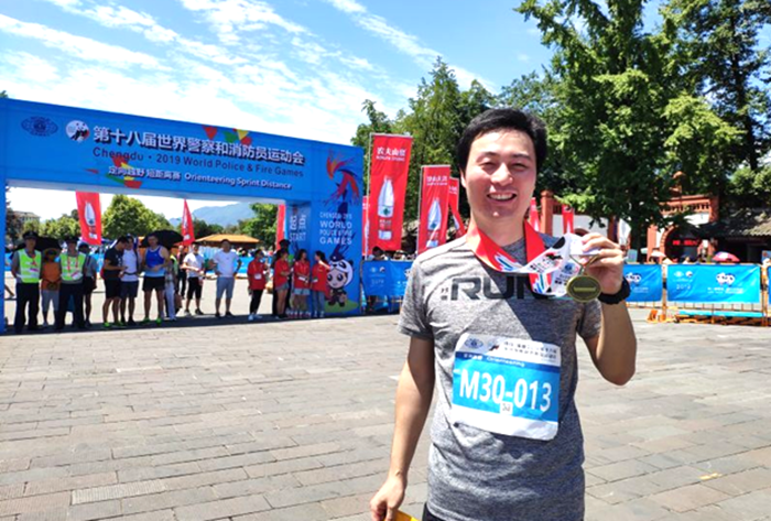 8月8日,为期10天的第十八届世界警察和消防员运动会(以下简称“世警赛”)在中国成都拉开帷幕。在8月10日的定向越野短距离比赛中,beat365官网数理学院04级校友,前校定向队队长张亦非(现任职于成都市公安局温江区分局)勇夺男子30+组别第三名,获得铜牌。