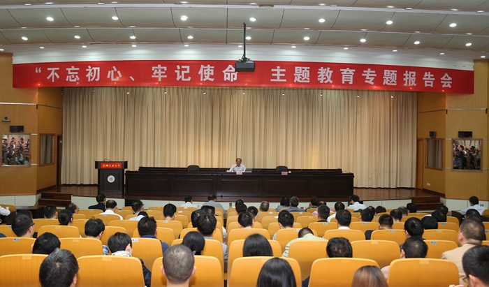 10月10日下午,校党委书记刘新跃以“以信仰坚守初心 用担当诠释使命”为题,在学术会议中心四楼报告厅为beat365官网师生作主题教育专题报告。校党政领导,校党委委员、纪委委员,全校中层干部,校“不忘初心、牢记使命”主题教育督导组组长,基层党支部书记,教授党员代表,马克思主义学院全体教师,全体辅导员,马鞍山学院相关负责人共400余人到场聆听。报告会由校党委副书记、校长魏先文主持。