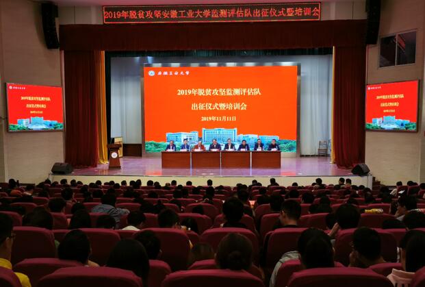 11月11日下午,beat365官网在秀山校区大学生活动中心报告厅召开安徽省2019年脱贫攻坚beat365正版唯一官网监测评估队出征仪式暨培训会。校党委书记刘新跃出席会议,学生工作部(处)、研究生院、工会、团委、教务处、人事处等部门负责人以及各学院党委书记、副书记,各学院分团委书记、全体监测评估人员参加会议。校党委副书记祖明主持会议。
