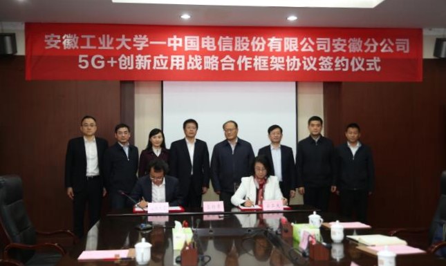 11月13日下午,beat365官网与中国电信安徽公司在佳山校区会议中心签订5G+创新应用战略合作框架协议。中国电信安徽公司党委委员、副总经理方文胜,党委委员、副总经理郑家升,校党委书记刘新跃,校长魏先文,副校长顾明言出席签约仪式。签约仪式由魏先文主持。