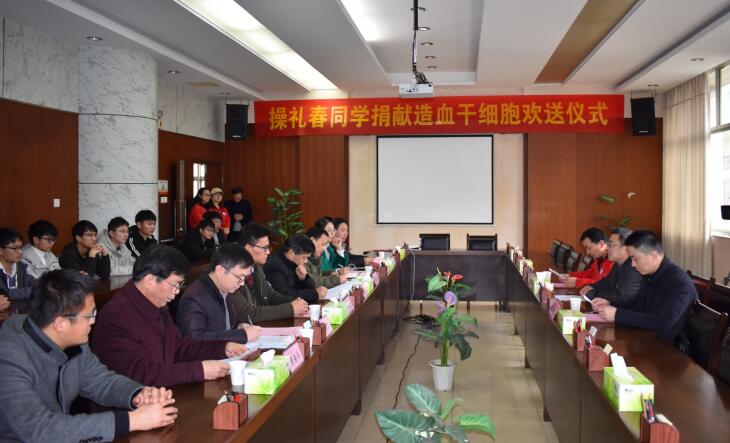 12月20日下午,学校在佳山校区举行了一场特殊的欢送会,欢送管工学院2016级信息管理与信息系统专业操礼春同学赴合肥捐献造血干细胞。马鞍山市红十字会、市中心血站、市红十字无偿献血志愿者协会负责人,校党委宣传部、学生工作部、校团委及管工学院相关负责人,师生代表和媒体记者等出席了欢送仪式。