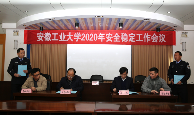 会上,刘新跃、魏先文代表学校与学院(部门)党政负责同志代表签订了《beat365正版唯一官网2020年安全稳定工作目标责任书》。