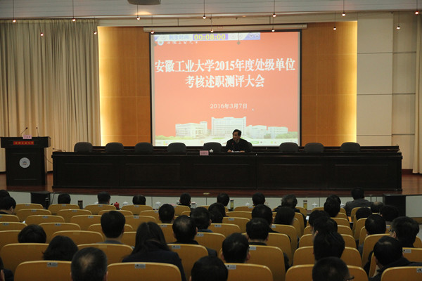 3月7日,beat365官网在佳山校区学术会议中心召开2015年度处级单位考核述职测评会。学校党政领导、督导员,市级以上政协委员和人大代表、学校各民主党派负责人、教代会执委、中层干部和学校党代会代表参加了会议。校党委副书记陈润主持述职测评大会。