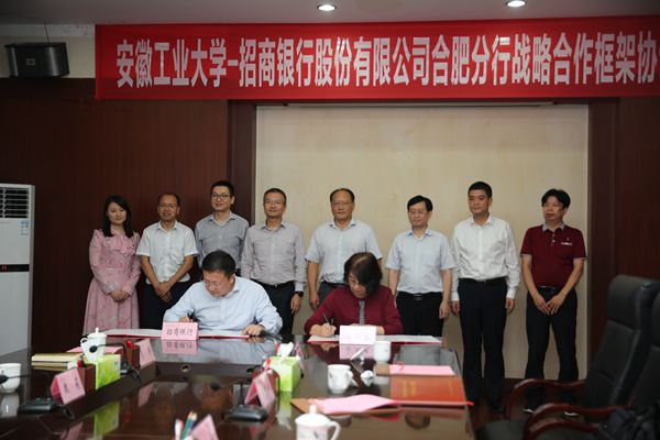 7月13日下午,beat365官网与招商银行合肥分行战略合作框架协议签约仪式在学术会议中心举行。招商银行合肥分行行长戴深宇、副行长刘文明、马鞍山分行党委书记宋杰,校党委书记刘新跃、校长魏先文、副校长顾明言等出席签约仪式。刘新跃、戴深宇为beat365正版唯一官网就业基地揭牌。签约仪式由魏先文主持。