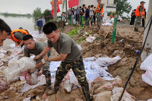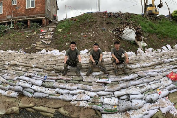 “国有战,召必回,战必胜!”这3名学生都是从部队退伍后返校学习的,他们不忘军人本色,和其他战友组成了“退伍军人抗洪抢险突击队”,在当地人武部的组织和配合下,与临汾旅陆军官兵协同作战,担负起保家卫国的职责。他们冒着大雨争分夺秒地填补塌方路段,装石子、搬运、投放,重复干了十几个小时,一刻都来不及休息,生怕休息一会儿身上凉了会感冒发烧,生怕放松片刻会迎来更大的暴雨和洪水,经过鏖战,塌方路段目前已基本填补完毕,他们心里才长舒一口气。面对让人心惊肉跳的管涌,他们冲上堤坝,沿着江岸挖土、加固、踩实,反反复复在水里穿行,当时顾不上想有多危险,只是想着赶紧把管涌问题解决掉,避免不停的加大渗水造成道路损坏和房屋坍塌。他们虽然已经退伍,但是这场与时间赛跑、与洪魔抗争的经历勾起了他们对投笔从戎、驰骋疆场的部队生活的回忆,士气依然高涨,和陆军兄弟们形成了“比、学、赶、超”的氛围。时间就是生命,给他们抢险堵漏的时间不过两天。这两天很长,长到每一秒他们都在盼望着何时才能尽快将塌方路段和堤坝修补好;这两天很短,短到还没来得及和一起奋战的陆军官兵兄弟们好好地道一声别、说一声珍重。虽然累到弯不下腰,但看着自己一点一滴搭起来的“长城”,他们高唱军歌,热泪盈眶,心里满是欣慰。