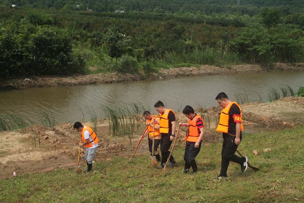 经过短暂培训后,突击队立即分为4个小组执行巡堤查险工作。各小组沿堤顶、内坡、堤脚、护堤地一字排开,地毯式、拉网式巡查,仔细查看是否有积水、裂缝、塌坡等状况,用脚踩的方式查找松软塌陷等异常,用铁锹扒开杂草、杂物查看积水、渗漏、散浸等情况。突击队员不顾辛劳,保持不间断的巡堤查险工作,先后发现渗漏点十余处并及时处理,排除隐患,有效缓解了当地防汛巡查压力。
