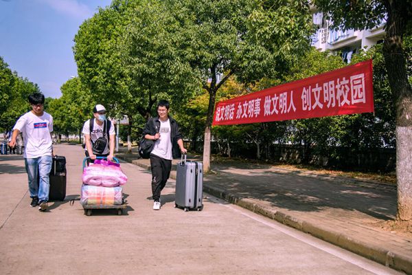 为确保学生返校工作平稳、有序、安全,学校多次召开协调会议,研究制定工作方案,反复推演工作流程。各学院认真落实学校决策部署,准确掌握学生行程相关信息,严格落实申报审批程序,细化接待工作方案。后勤、保卫部门严格落实工作责任制,做到校园安全管控到位、餐饮、宿舍、维修等服务保障到位。报到现场,同学们佩戴口罩、间隔排队,在进行体温测量、身份核验、查验健康码等程序后,有序进入校园。
