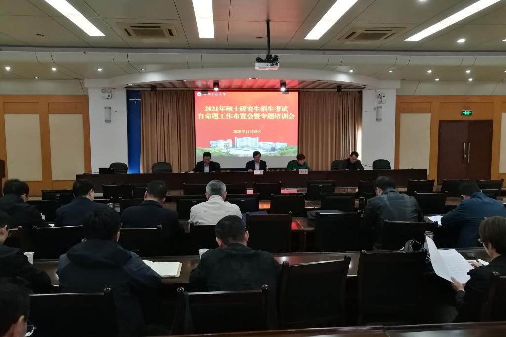 会上,研究生院负责人传达了教育部、安徽省教育厅2021年硕士研究生自命题工作精神,介绍了2021年硕士研究生招生考试初试自命题科目命题工作的具体安排,并对与会人员开展了保密专题培训。