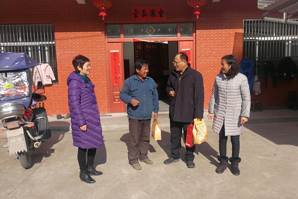 12月22日,校党委书记刘新跃、校党委副书记祖明一行来到六安市裕安区西河口乡红石岩村和独山镇沙岗店村调研指导脱贫攻坚工作,走访慰问贫困户。