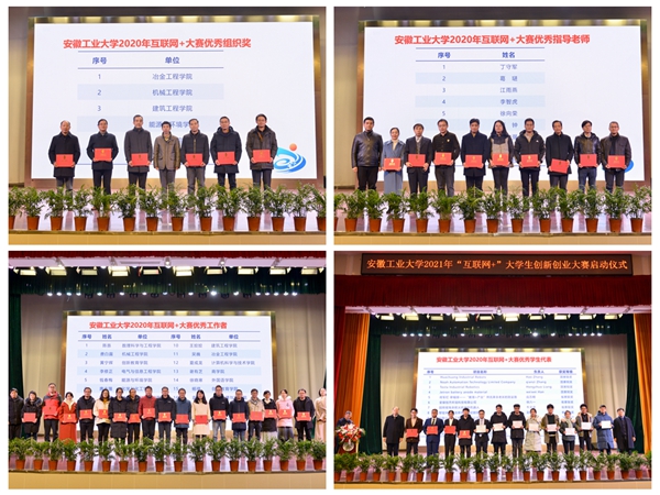 大会宣读了学校2020年“互联网+”大学生创新创业大赛表彰决定,并为获得优秀组织奖、优秀指导老师、优秀工作者、优秀学生代表的先进集体和个人颁发证书。