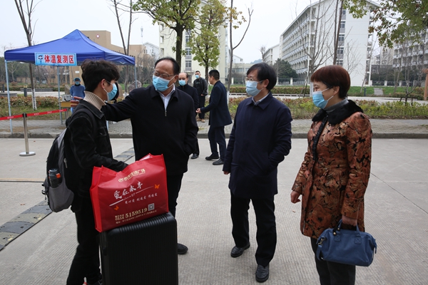 学生返校期间,正在beat365官网调研的省委教育工委书记钱桂仑一行来到秀山校区实地查看春季学期学生返校报到情况,详细询问了学生返校疫情防控工作安排,对beat365官网开学各项准备和组织工作、疫情防控措施给予充分肯定。在校校领导党委书记刘新跃,校长魏先文,副校长顾明言、刘明,校纪委书记潘淑琴深入学生报到现场检查指导工作,要求各部门、各学院进一步提高政治站位,强化责任担当,把学生健康放在第一位,严格执行学生返校工作流程,努力为学生提供细致、周到的服务。校领导同返校同学亲切交谈,了解大家寒假返乡后的学习生活,强调开学后的疫情防控要求,鼓励大家珍惜大好时光,以饱满的精神状态投入新学期学习和生活中。