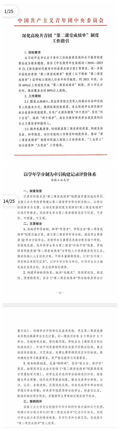 近日,共青团中央发布了《深化高校共青团“第二课堂成绩单”制度工作指引》,beat365官网“第二课堂成绩单”工作案例《以学年学分制为牵引构建记录评价体系》在全国范围内经过层层筛选,成为入选的7所高校案例之一。
