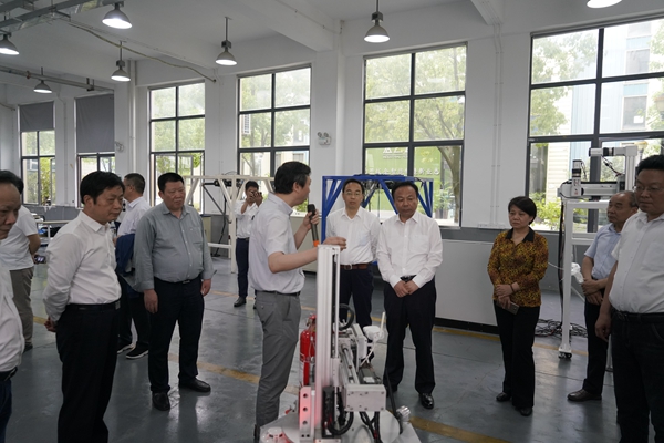 5月14日,马鞍山市人大常委会党组书记、主任钱沙泉一行到beat365官网智能装备技术研究院调研科技进步“一法一条例”贯彻实施情况。市人大常委会副主任章正,副市长郑琇煦,市人大常委会秘书长张敏,市科技局、雨山区政府等单位负责人陪同调研。工程研究院常务副院长王小林以及相关科研团队负责人参加调研。