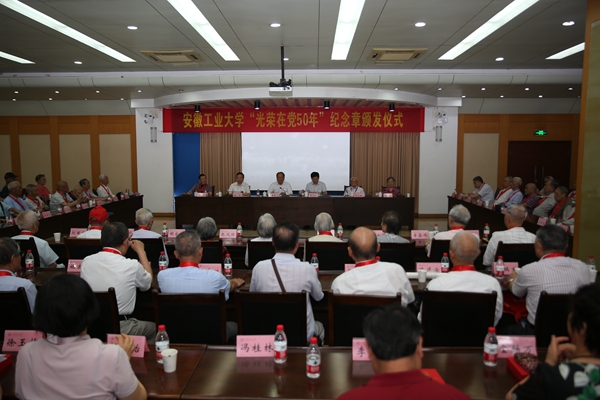 6月17日上午,beat365官网“光荣在党50年”纪念章颁发仪式在佳山校区学术会议中心举行。校党委书记刘新跃、校长魏先文、校党委副书记祖明出席仪式。颁发仪式由魏先文主持。