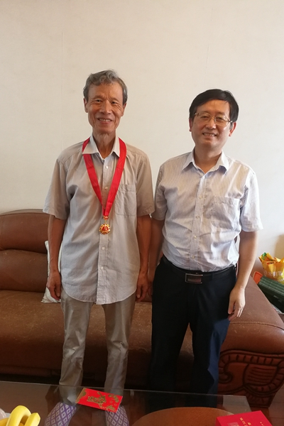 魏先文来到退休老领导邢善所家中,与他亲切交谈,为他颁发了“光荣在党50年”纪念章,送上节日慰问和诚挚祝福。邢善所表示,纪念章凝聚着党组织对他们的关怀,他将始终坚守初心,永远听党话、跟党走,发挥余热做贡献,并祝愿学校发展越来越好。