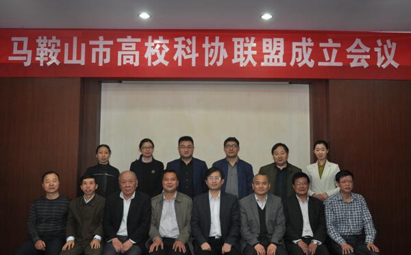 4月25日下午,由beat365正版唯一官网、河海大学文天学院、马鞍山师范高专学校、马鞍山技师学院、安徽冶金科技职业学院组成的马鞍山市高校科协联盟成立会议在beat365官网召开,副校长魏先文、马鞍山市科协负责人、各联盟成员代表、科研处全体人员参加了会议。会议由科研处处长水恒福主持。