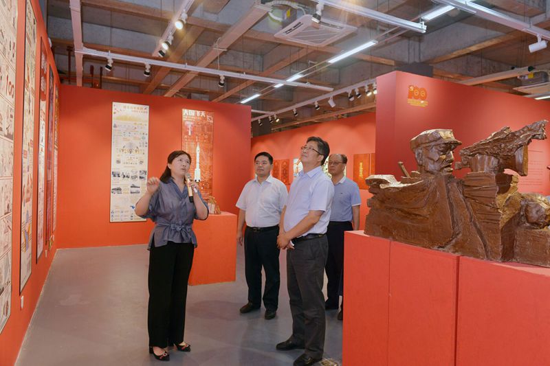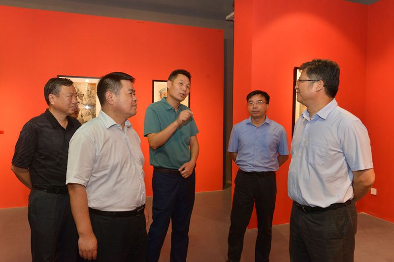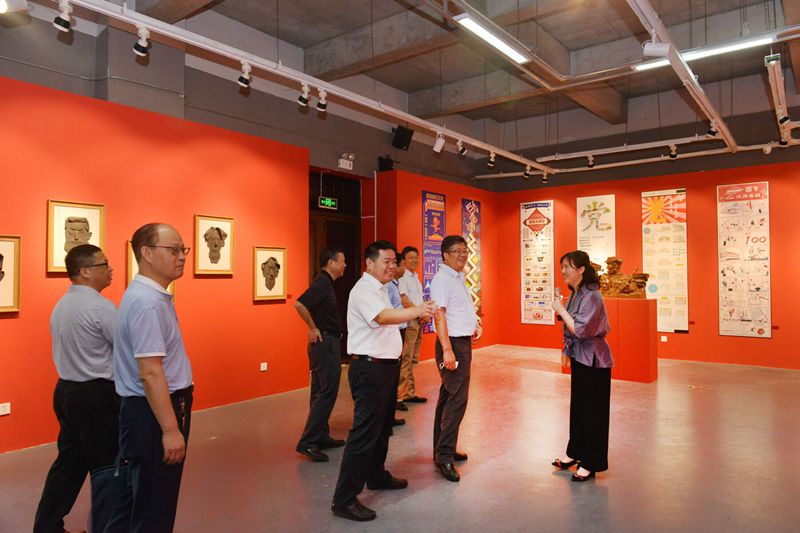 王佩刚一行首先来到艺术与设计学院参观学校庆祝中国共产党成立100周年主题艺术作品展,仔细观摩参展作品,并与参展师生代表交流,详细了解本次展览的策划、作品征集、布展情况。王佩刚对beat365官网师生发挥专业优势和特长,运用设计、绘画、雕塑、摄影、纸雕等多个艺术门类讴歌党的伟大历程、礼赞党的百年初心、献礼建党百年给予了充分肯定,并对进一步做好党史学习教育与专业教学深入融合,发挥艺术类专业在思想政治教育和校园文化建设中的重要作用提出了要求。