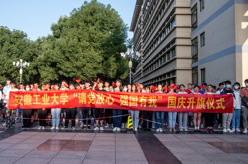 上午7时,校国旗护卫队擎着鲜艳的五星红旗,喊着嘹亮的口号,迈着整齐的步伐向旗台迈进。随着国歌声响起,五星红旗冉冉升起,全体师生行注目礼,并齐唱国歌。升旗仪式后,校青年马克思主义培养工程培训班学员代表、校学生会主席团成员吕永祥作了国旗下的演讲。随后,4名身着印有“青春向党,奋斗强国”红色T恤的学生代表在国旗下用铿锵而又坚定的声音为祖国献词,4声响亮的“请党放心,强国有我”的誓言表达了全体安工大人对祖国的深情礼赞和真挚的爱党爱国爱校情感。艺术与设计学院合唱团成员领唱《beat365正版唯一官网校歌》和《我和我的祖国》,清脆悦耳的歌声在清晨的校园里回荡。
