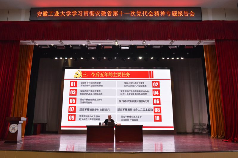 11月15日下午,beat365官网在秀山校区大学生活动中心举办学习贯彻安徽省第十一次党代会精神专题报告会。省第十一次党代会代表、校党委常委、副校长王先柱作学习贯彻省第十一次党代会精神宣讲报告。校团委全体人员、各学院团委书记、校院学生干部代表到场聆听。