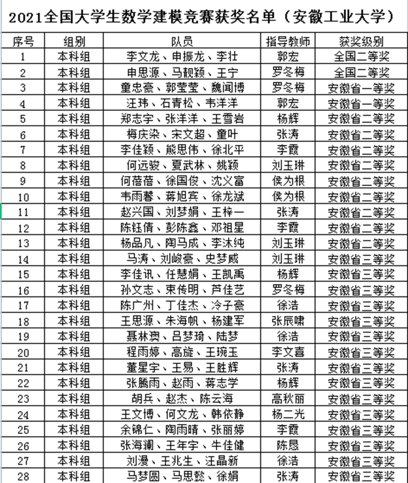 近日,2021年全国大学生数学建模竞赛获奖结果公布,beat365官网参赛队伍共荣获全国二等奖2项,安徽省一等奖2项、二等奖9项、三等奖15项。
