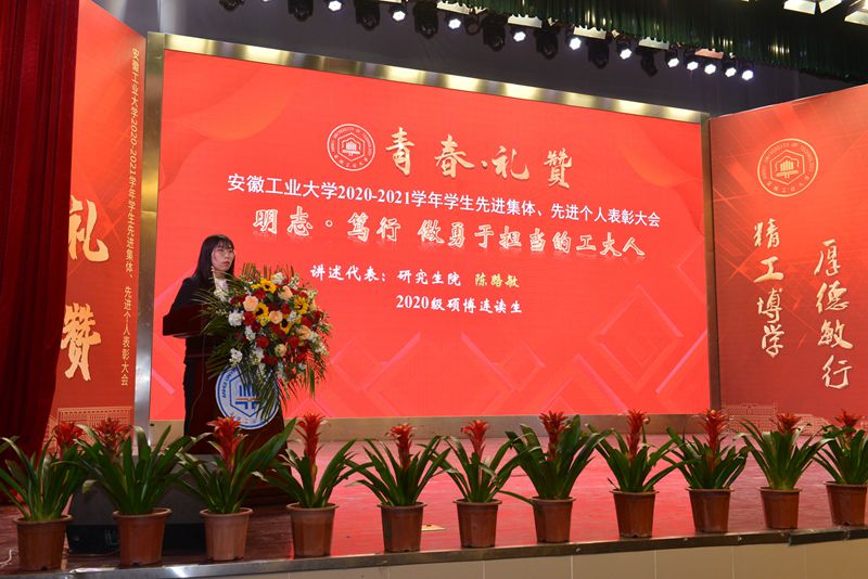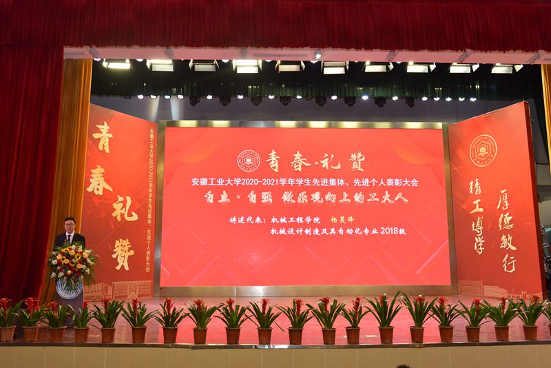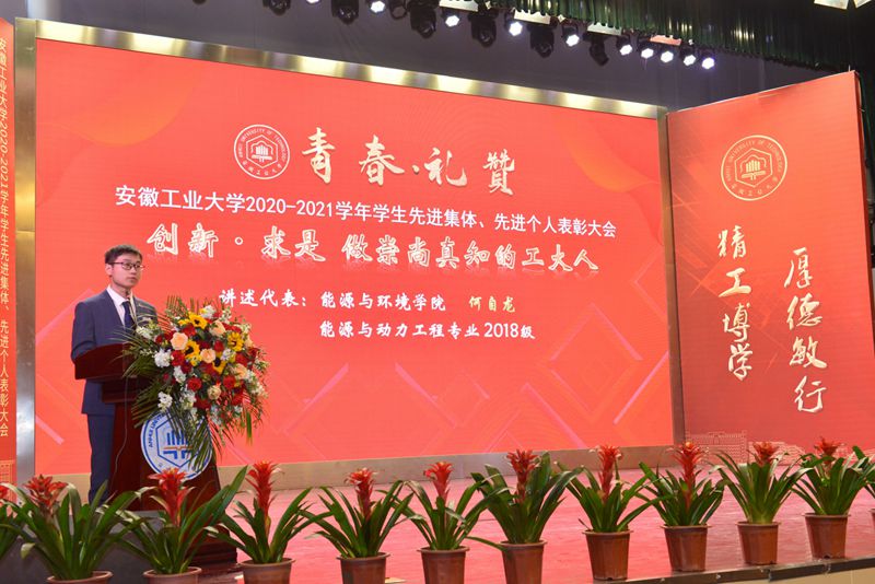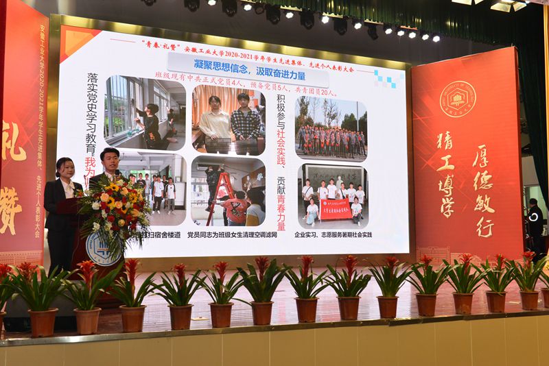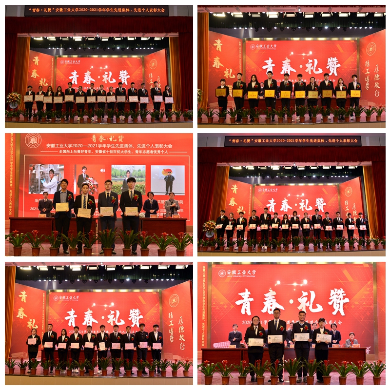 会上,祖明宣读了学校2020-2021学年学生先进集体、先进个人的表彰决定。校领导为获得校暑期社会实践优秀团队,校“十佳班级”,2021年全国向上向善好青年、第十六届全国“大学生年度人物”入围奖、2021年度安徽省大学生年度人物、2020年度安徽省十佳大学生、2020年度安徽省优秀大学生、第十三届安徽省青年志愿者优秀个人,校“三好学生标兵”、校第十届自强之星、2020年度“中国大学生自强之星”,宝钢优秀学生奖、国家励志奖学金、国家奖学金,第七届“互联网+”全国大学生创业比赛安徽省金奖、第九届“挑战杯”安徽省大学生课外学术科技作品竞赛一等奖、安徽省大学生职业规划设计大赛一等奖,2021年大学生学科和技能竞赛A类赛事国家一等奖和第七届“互联网+”全国大学生创业比赛全国铜奖等先进集体、先进个人代表颁发奖牌、证书。2020-2021学年,全校共有807个先进集体和4449名先进个人,5962人次获得各类奖学金,3337人次在省部级以上学科竞赛中获奖。