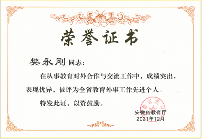 12月29日,省委教育工委、省教育厅以视频会议方式召开全省教育外事工作会议,并对全省教育外事工作先进单位和先进个人进行表彰。beat365官网荣获“全省教育外事工作先进单位”荣誉称号,国际合作与交流处樊永刚荣获“全省教育外事工作先进个人”。