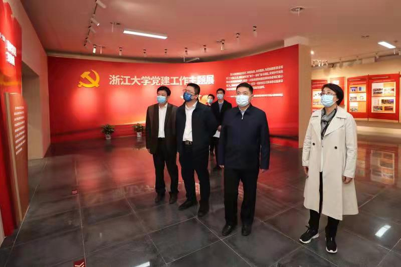 调研期间,陆林一行参观了浙江大学党建馆。陆林对“红船精神主题展”和“浙江大学党建工作主题展”坚持用数字说话、让故事叙事,注重发挥先进典型的引导作用,以图片、实物等形式多角度、全方位展现浙江大学在星火传燃铸党魂、旗帜鲜明把方向、立德树人育英才、攻坚善治创一流、固本强基担使命等方面践行新思想、建功新时代的生动实践,展示浙江大学作为全国首批党建示范高校在党建引领事业发展方面的丰硕成果等先进做法,给予了高度评价。(撰稿:王诺亚 审核:赵保平 张苒 黄勇)