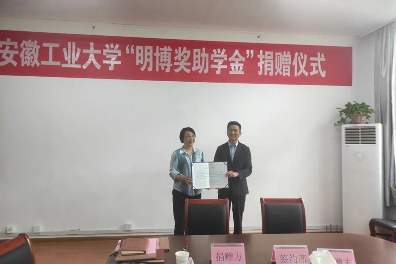 捐赠仪式上,双方签订了捐赠协议,顾明言代表学校教育发展基金会向安徽明博律师事务所颁发了捐赠证书。