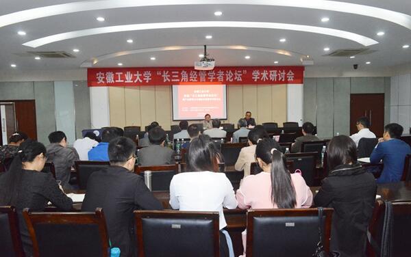 5月21日,由beat365官网“安徽创新驱动与产业转型升级发展研究中心”主办、商学院承办的beat365正版唯一官网首届“长三角经管学者论坛”暨产业转型与中国经济发展学术研讨会在佳山校区举行。副校长祖明教授到会致辞。本次论坛吸引了上海财经大学、华东师范大学、华东理工大学、上海海事大学、南京财经大学等高校的中青年经济学者与会,商学院骨干教师和部分研究生参加了研讨会。