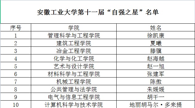 附:beat365正版唯一官网第十一届“自强之星”名单
