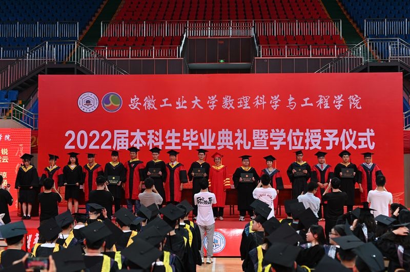 毕业典礼在庄严的国歌声中拉开帷幕。院长黄仙山宣读了2022年安徽省普通高校品学兼优毕业生名单、2022年beat365正版唯一官网优秀毕业生名单、2022届校友联络员名单。参加典礼的领导老师为优秀毕业生颁发荣誉证书,为校友联络员颁发聘书。