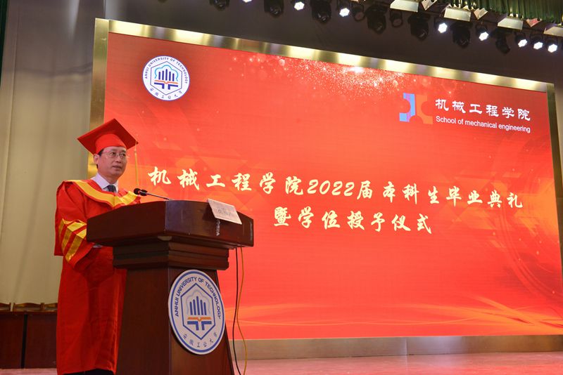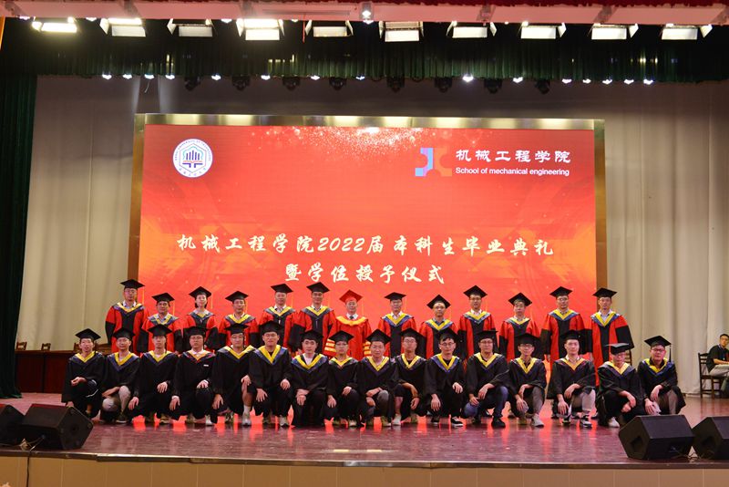在学位授予仪式上,院长刘庆运宣读了《关于授予2022届机械工程学院本科毕业生工学学士学位的决定》。毕业生们身着学士服依次走上主席台,魏先文为每位毕业生扶苏正冠,颁发毕业证书、学位证书,并合影留恋。