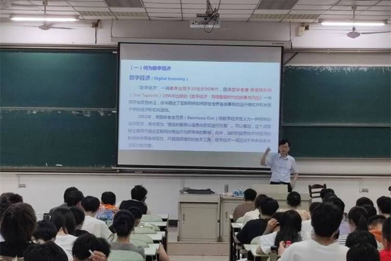 6月9日晚,校长魏先文围绕“打造数字经济新优势”专题,为冶金学院2021级本科生讲授思政课。