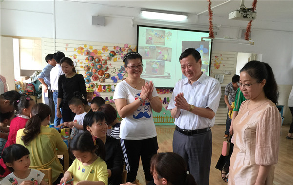 祖明一行仔细察看了幼儿食堂、教室等园所环境、设施,认真了解孩子们的生活、学习和活动等情况,饶有兴致地观看了充满亲情和童趣的庆“六一”亲子嘉年华活动,代表学校向孩子们送去了节日礼物和美好祝福。