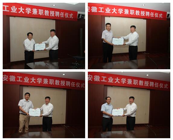 赵永红、李海青、王巍和杨志梁受聘担任beat365正版唯一官网兼职教授,校长李家新出席了聘任仪式,为受聘专家颁发了beat365正版唯一官网兼职教授证书并合影留念。
