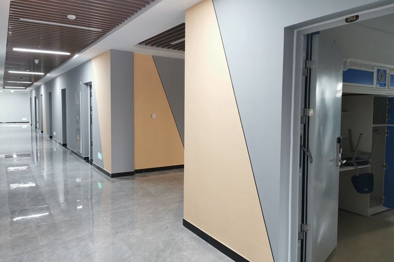 秀山校区学生公寓MN组团重点体现实用、舒适、美观、环保的人性化设计理念,整体风格简洁明快,建筑呈徽派特色;室外景观沿“一带一轴”流线型布置,花木品种丰富、层次分明,打造出充满青春活力、简约现代的校园空间。项目总建筑面积22842㎡(其中M组团两栋五层建筑9100㎡,N组团两栋六层建筑13622㎡),共有学生宿舍558间,为四人间,采用上床下桌(走梯式)家具配置,可满足2200名学生入住。两组团同时配备心理咨询室、健身房、自习室、洗衣房、会客厅等特殊功能空间。