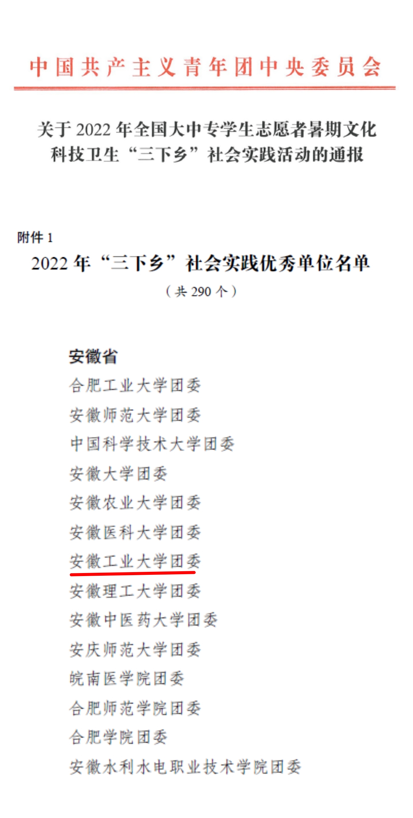 近日,共青团中央发布《2022年全国大中专学生志愿者暑期文化科技卫生“三下乡”社会实践活动总结通报结果公示》,beat365官网团委荣获2022年“三下乡”社会实践优秀单位。