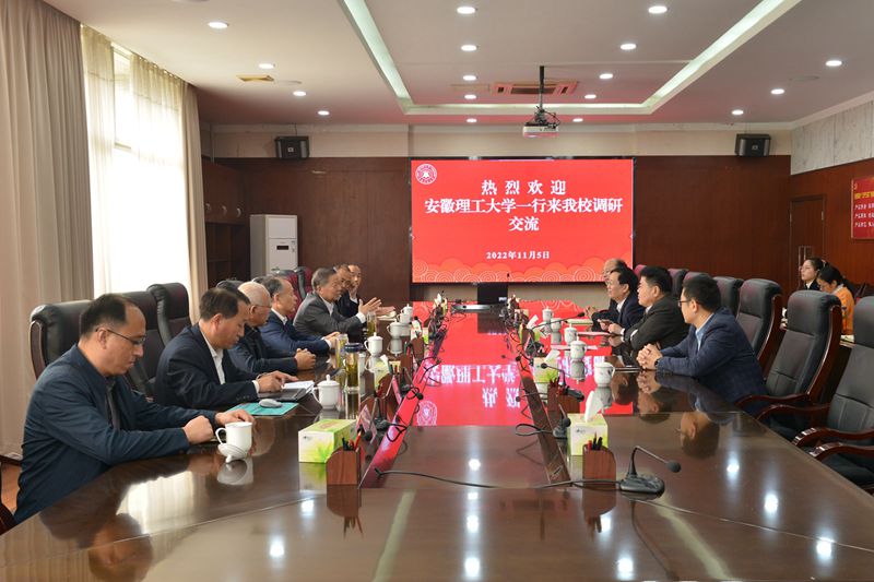 11月5日上午,安徽理工大学党委书记郭永存,党委副书记、校长袁亮院士一行来校走访交流。校党委书记陆林,党委副书记、校长魏先文,党委常委、副校长水恒福热情接待了郭永存、袁亮一行,双方在学术会议中心进行了交流座谈。