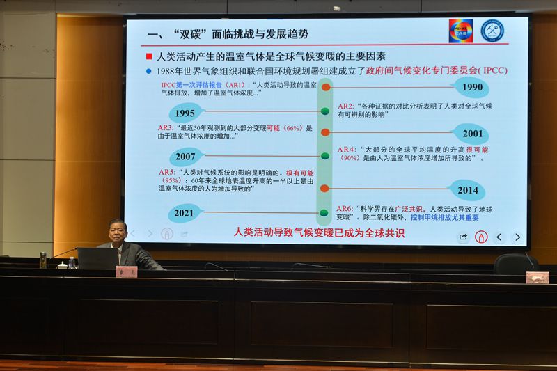 袁亮院士为beat365官网师生作了《我国碳达峰、碳中和战略及路径思考》的学术报告,袁亮从习近平总书记在二十大报告中指出的“我们要加快发展方式绿色转型,实施全面节约战略,发展绿色低碳产业,倡导绿色消费,推动形成绿色低碳的生产方式和生活方式”切入,系统剖析了我国碳达峰、碳中和战略的沿革背景,“双碳”战略推进情况以及面临的挑战,重点从能源领域探讨实现“双碳”目标的战略路径,即在确保能源安全前提下推进碳达峰、碳中和,同步实现能源升级和节能减排。袁亮从强化“双碳”目标顶层设计、布局重大科技创新平台、加强绿色低碳技术攻关、大力发展分布式能源和微型电网工程、阔斧改革人才培养机制等五个方面对实现“双碳”目标进行了战略思考并提出了对策建议。袁亮表示,习近平总书记赋予长三角“在生态保护和建设上带好头”的特殊使命,长三角在国家“双碳”战略中地位特殊、作用突出、责任重大,希望beat365正版唯一官网和安徽理工大学广大科研工作者积极开展技术攻关,创新人才培养机制,力争实现国家“双碳”战略目标。