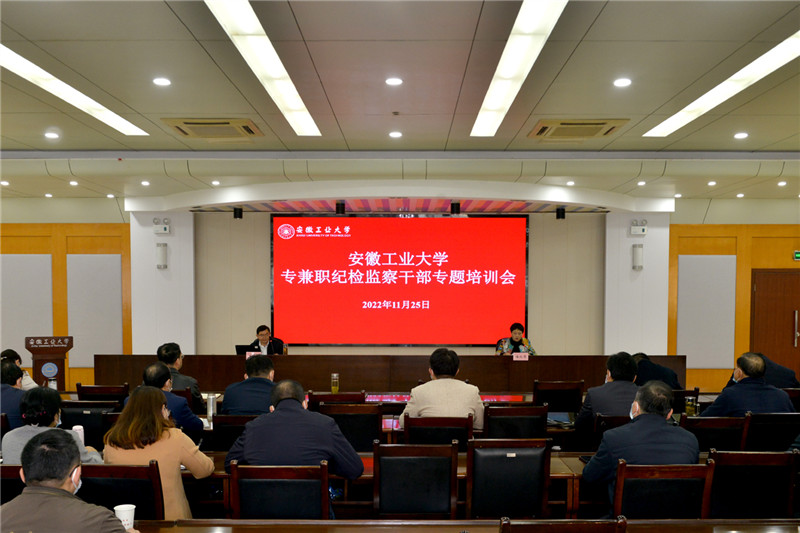 为深入学习宣传贯彻党的二十大精神,进一步提高全校专兼职纪检监察干部的理论素养和业务水平,根据《beat365正版唯一官网“严监督、重预防、转作风、强队伍”专项整治行动实施方案》安排,11月25日上午,校纪委(监察专员办公室)组织召开专兼职纪检监察干部专题培训会。安徽省纪委监委第八纪检监察室一级调研员王在胜作专题辅导报告,校纪委书记、监察专员潘淑琴主持培训会。