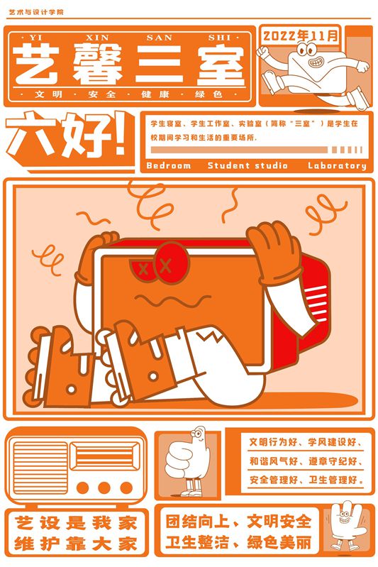 为进一步提高大学生的文明素养,增强大学生安全意识,创建文明安全和谐美丽的育人环境,学校于2022年10月起开展“践行文明行为、筑牢安全防线、倡导健康生活”文明安全宿舍创建活动。