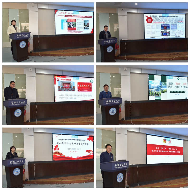 会上,来自14个学院分团委书记进行工作展示,围绕学校中心工作和共青团年度工作要点,回顾了一年来学院团委在思想引领、组织建设、志愿服务、社会实践、创新创业、文化建设等方面的工作,展示一年来各学院分团委在凝聚青年思想、为青年成才服务和为青年建功搭台方面取得的成果。参会评委嘉宾对学院共青团工作提出了建设性的意见建议。